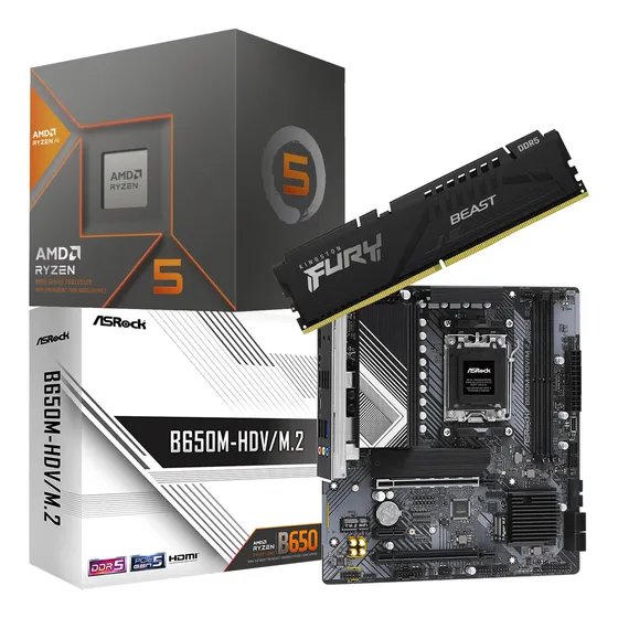 Ryzen 9600X e DDR5. Potência de 9ª Geração. Seu upgrade definitivo para jogos e criação.