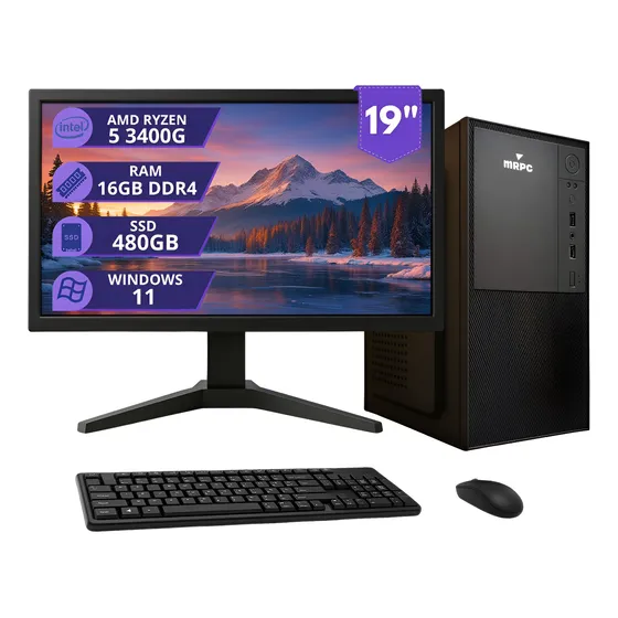 Setup completo, pronto para ligar e usar. Excelente CPU Ryzen 5, mas o desempenho em jogos pesados é limitado pela ausência de uma placa de vídeo dedicada.