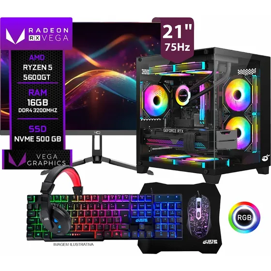 PC Gamer de entrada completo, ideal para eSports e trabalho, com o poderoso Ryzen 5 5600GT e 16GB de RAM rápida.